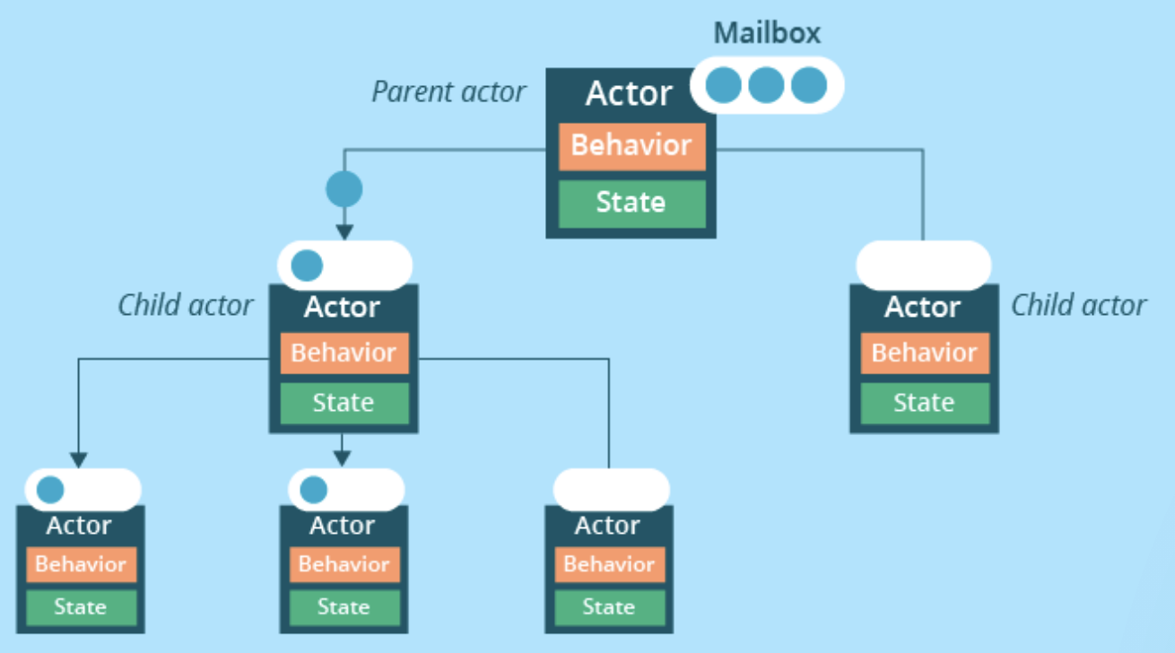 Actor는 우편함과 상태를 갖고 메시지에 응답할 필요만 있는데 그 Actor가