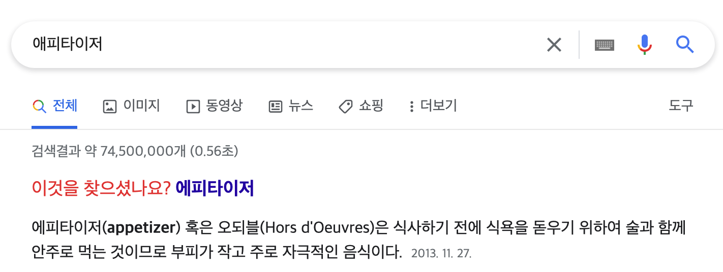 * 그리고 에피타이저가 아니라 애피타이저가 맞다고 합니다